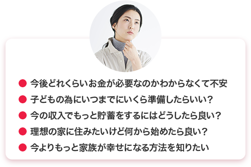 後日相談を受けて、収支の赤字を一気に改善してもらいました。また、年単位の貯蓄計画も同時に提案されて、家族のぎすぎすがなくなりました